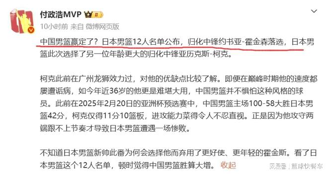 北京时间2月26日,男篮世预赛小组赛将正式打响,中国队将在客场挑战日本队。这一场比赛对于中国队极为重要,事关世界杯资格,中国队上下也是极为重视。反倒是中国队的竞争对手日本队,他们在上一个窗口期拿到两连胜后,球队上下已经开始有点飘了。不仅有点轻敌,而且,他们甚至连归化中锋霍金森都不带,没有了这个内线大杀器后,中国队客场对阵日本队这一战,似乎已经稳操胜券——赢定了!
