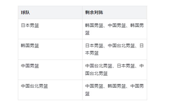 如果一胜中国台北队、一胜日本男篮,则要看韩国男篮脸色。若韩国队赢中国台北队,中国队晋级;若他们输,中国队则跟中国台北队比净胜球。